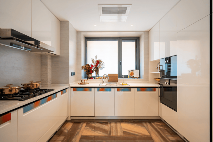 区别于常规豪宅仅以奢石作为点缀,绿城黄浦ONE在多个空间大手笔地采用了整体铺贴的设计;
