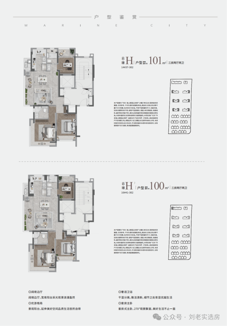 H户型:把“江景+中轴+墅区”这三重景观资源一网打尽!