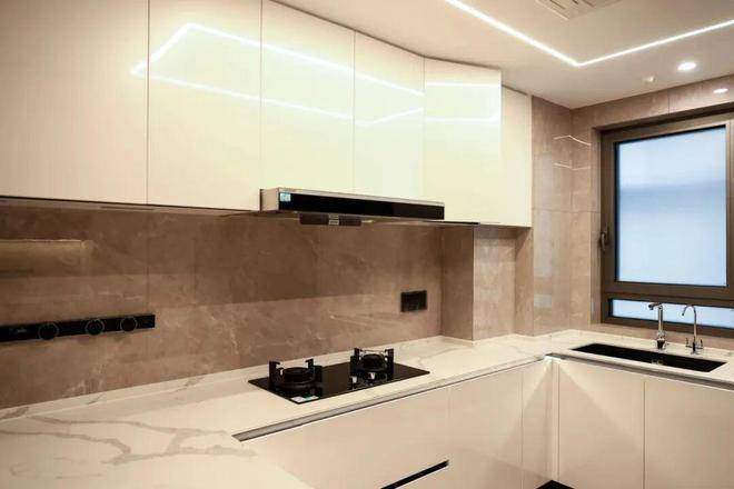 在户型的生活动线设计方面,象屿也极尽巧思,如在厨房采用U型设计动线,让住户一个转身就完成洗、切、配、烧四个步骤,省时省力;同时配备西门子品牌脱排、灶具、洗碗机三件套,以及嵌入式冰箱,方便了居家生活……