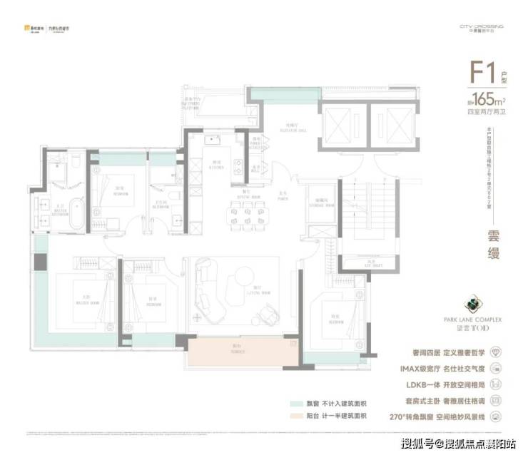 四房格局动静分区,全明无暗角,多飘窗拓展空间 ,一步满足改善家庭全周期居住需求,兼具尺度、舒适度与稀缺值。