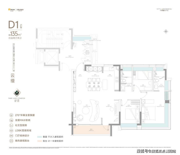 中環置地中心·望雲135㎡为 8层纯洋房,容积率仅1.8,一梯两户,实得率约91% ,是北中环稀缺改善藏品。