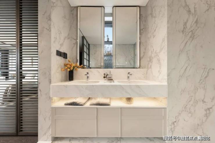 大量的雅士白大理石、大花白岩板、皇家孔雀岩板、水纹夹丝玻璃、仿洞石岩板、卡拉卡塔白岩板等等,极尽奢华!