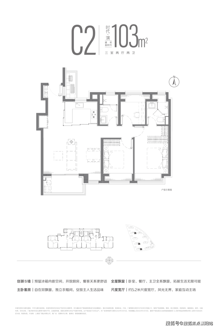 这款户型适合刚改家庭,空间更宽敞,居住体验更舒适。同样是南北通透、三开间朝南,采光通风俱佳。
