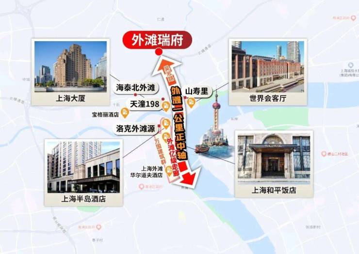 外滩一公里正中轴,更是上海楼市公认的亿级价值轴线 ,顶奢酒店与亿级豪宅在此双向印证价值。