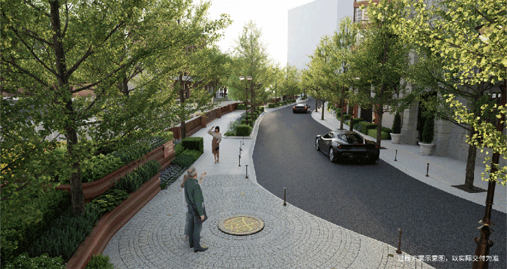 其一, 九龙路滨水空间焕新 ,未来业主下楼就是 红砖艺术长廊、迎宾树阵、文化景墙、全龄及宠物友好花园。