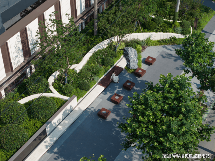 在尊重场地的同时,处理、弱化这些不利因素是十分让人头疼的先天问题;通过梳理和推演,巧妙的采用空间的和绿化地形的组织,逐一地包裹了这些不速之客,并成功将关注点从无法移除的电线杆转向更加动人的绿植造景上来。
