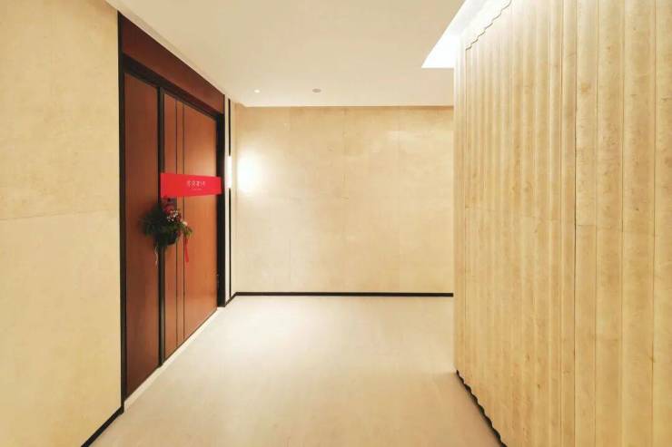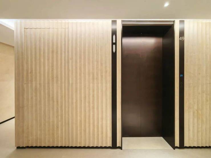 电梯厅是这样, 整个公区的墙面都采用了波浪形雅韵石材铺设 ,构筑格调与品质,将上海的摩登气息注入归家大堂过道很宽敞简洁大气的公区。
