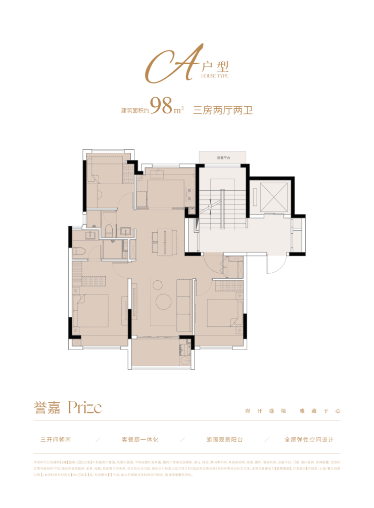 98㎡三房两厅两卫 :爆款刚需改善户型,三开间朝南、南北通透、全明采光。客厅阔绰,主卧带独立卫生间和飘窗,U 型厨房操作方便,两个次卧可做儿童房、老人房或书房,三口之家或二胎家庭都能住得下,总价约 1048-1150 万,门槛适中。
