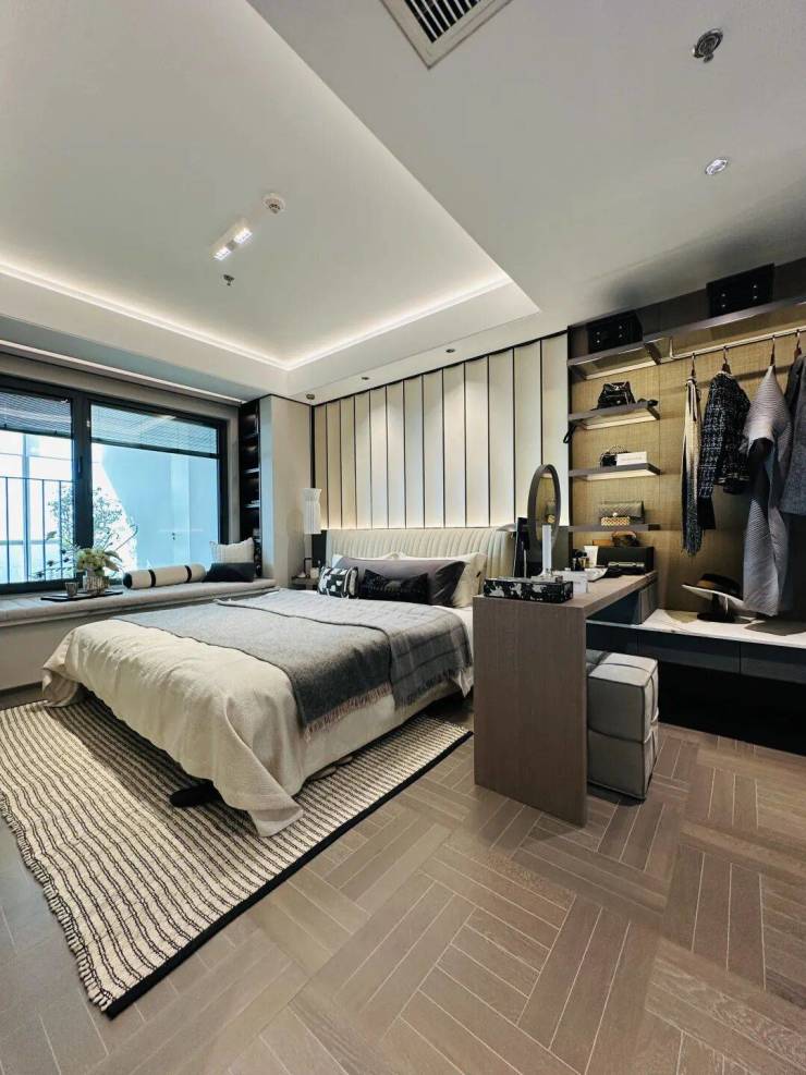 127㎡三房两厅两卫 :横厅设计,带双阳台,主卧配独立衣帽间,动静分区明确。公共空间宽敞,待客、家庭活动不拥挤,卧室私密性好,适合追求空间感的改善家庭,总价约 1350-1420 万。