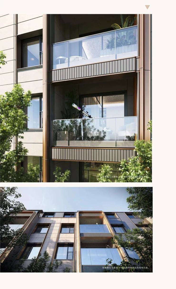 立面设计用坡屋顶,正反弧形线脚等手法,以抽象、简化的方式融入建筑形体中,传承历史的同时加以创新,形成新的设计语言,既和南侧风貌建筑西侧新建建筑保持统一,使规划建筑有机融入周边城市形态,形成统一的城市界面形象。