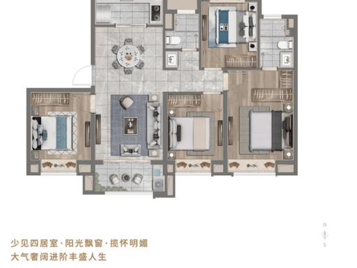 3. 119-129㎡四房两厅两卫:改善顶配,三代同堂一步到位
