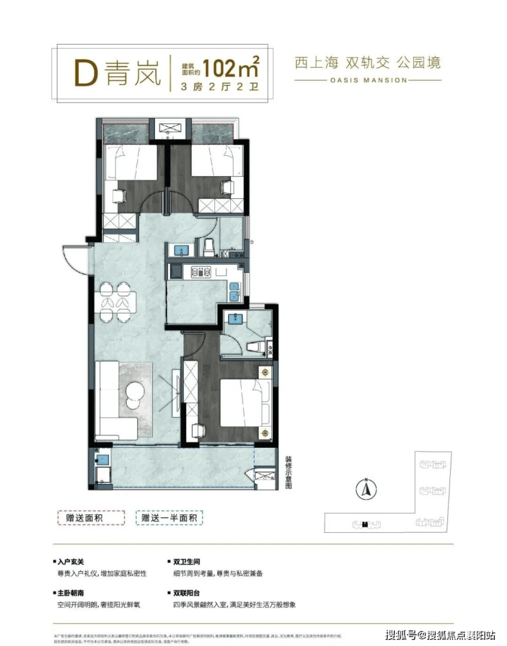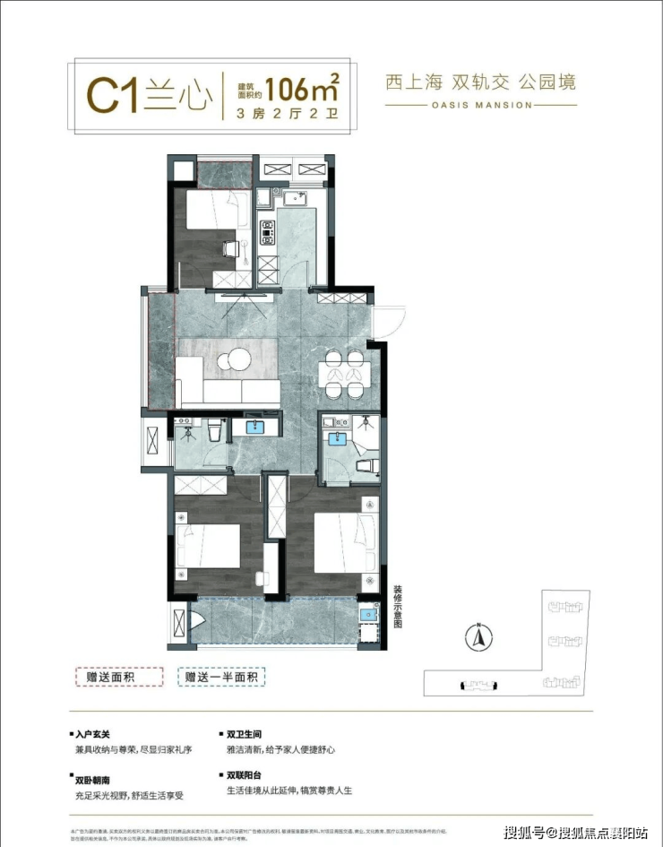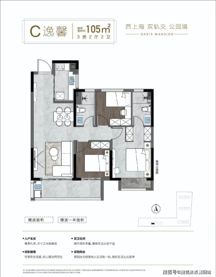 建面约 105-110㎡三室两厅两卫:总价 168-182 万起,改善家庭终极选择