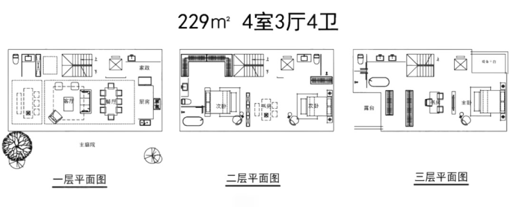 一层: 独门独院入户,打造独栋式归家仪式感。会客厅、厨房与灵动空间构成家庭社交核心,大面积落地窗成点睛之笔,最大限度引光入室。预留大面宽耳房可改造为独立套间,满足多样化需求;1-3 层贯通梯与电梯井(预留)设计,最大化减少空间浪费。