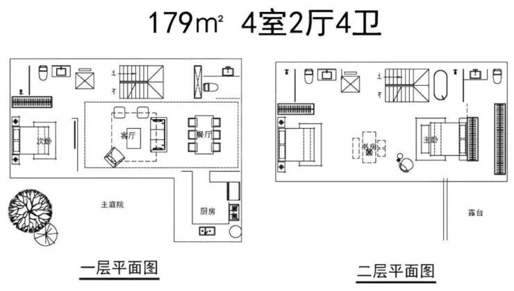 二层: 双套房配置,预留 2 米大床摆放空间,兼顾舒适与私密。大尺度开间,落地窗让阳光肆意流淌,开间均在4米以上。