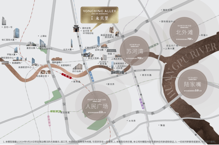 同时,2站地铁即可直达人民广场,直线距离仅约2.3 公里(直线距离),900 米至苏河湾商圈,3 公里触及外滩与陆家嘴,上海最核心、最繁华的高能配套,皆在3公里生活圈内。