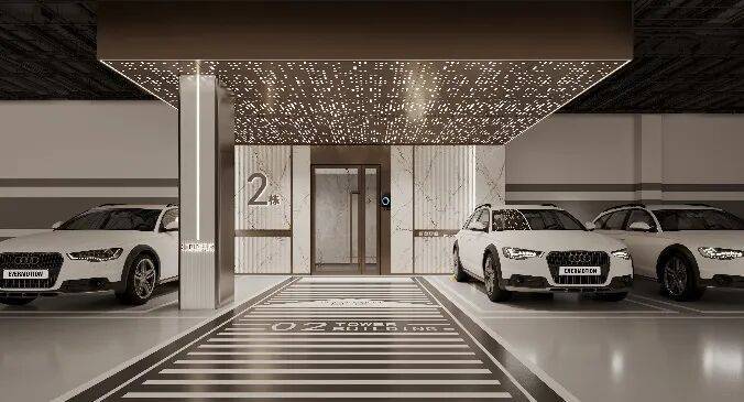 地下车库未来也将呈现出 下沉式采光的奢艺地库庭院, 让你伴着温暖灯光归家。