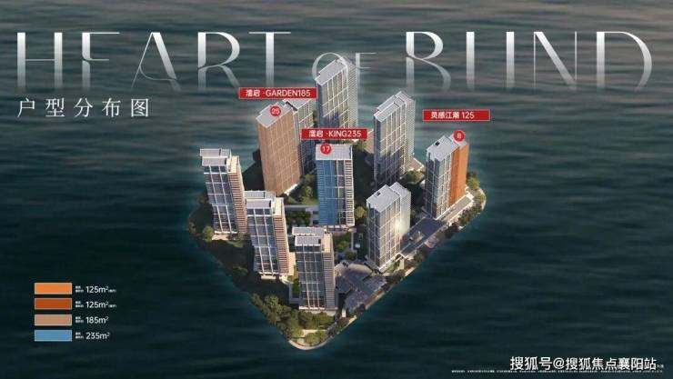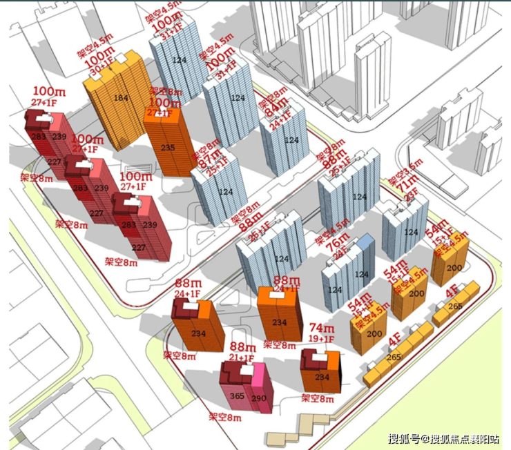 项目将建造9栋高层住宅,其中西侧三栋标红的楼栋,被旋转至西南方向,确保三栋楼互不遮挡, 位于建筑上部50米高的住宅单位将能从各个角度欣赏到江景及S湾 。