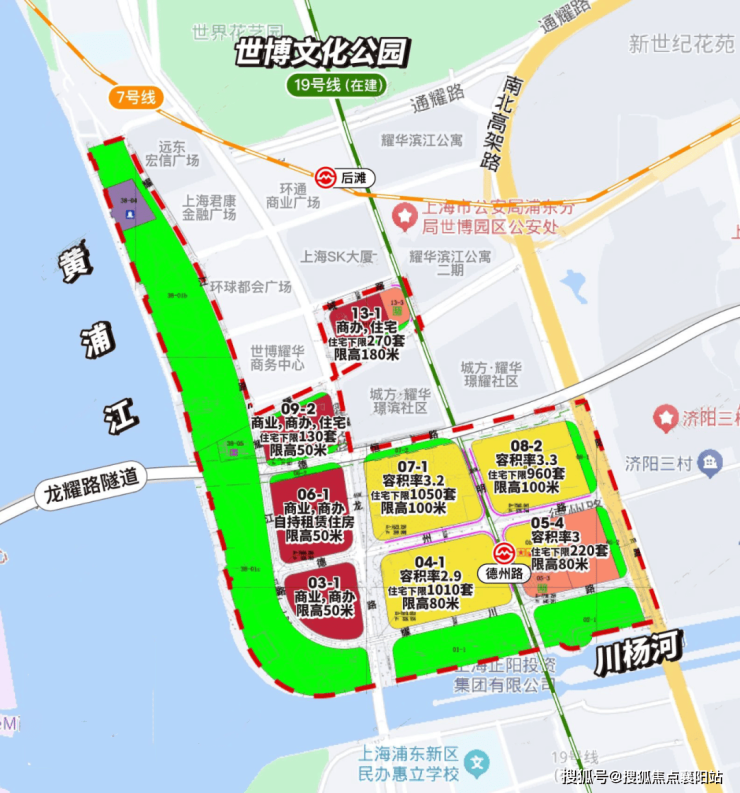交通上方面: 原有7号线后滩站,串联徐汇滨江、静安寺等核心商圈,但相对来讲,站点近后滩商办,离九宫格略远;但19号线的建设,真正打通了后滩任督二脉, 不仅后滩站双轨交汇,还规划了德州路站,就在九宫格门口。