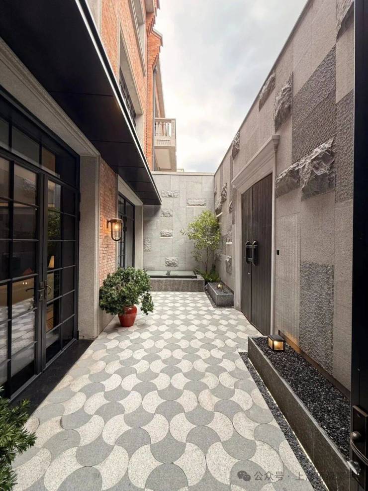 柏福里:共计10套,采用现代装饰艺术风格,运用水刷石工艺打造立面,建面约330㎡双拼别墅。现代装饰艺术风格注重线条的简洁与流畅,强调几何造型的运用,水刷石工艺的运用让建筑立面更具质感与层次感,既保留了老上海建筑的古朴韵味,又融入了现代建筑的时尚元素,形成了极具视觉张力的建筑形态。柏福里组团的建筑设计,既注重外观的美观与格调,又注重内部空间的实用性与舒适度,完美实现了“颜值与实力”的双重兼具。