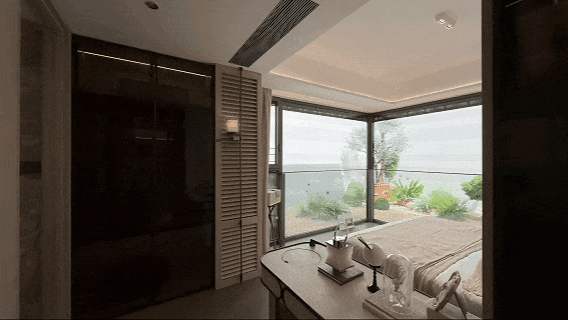 主卧豪华套房配置自不用说,重点是这个 双270°转角飘窗 ——房间一个,卫生间一个。
