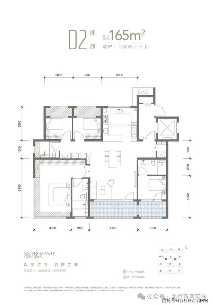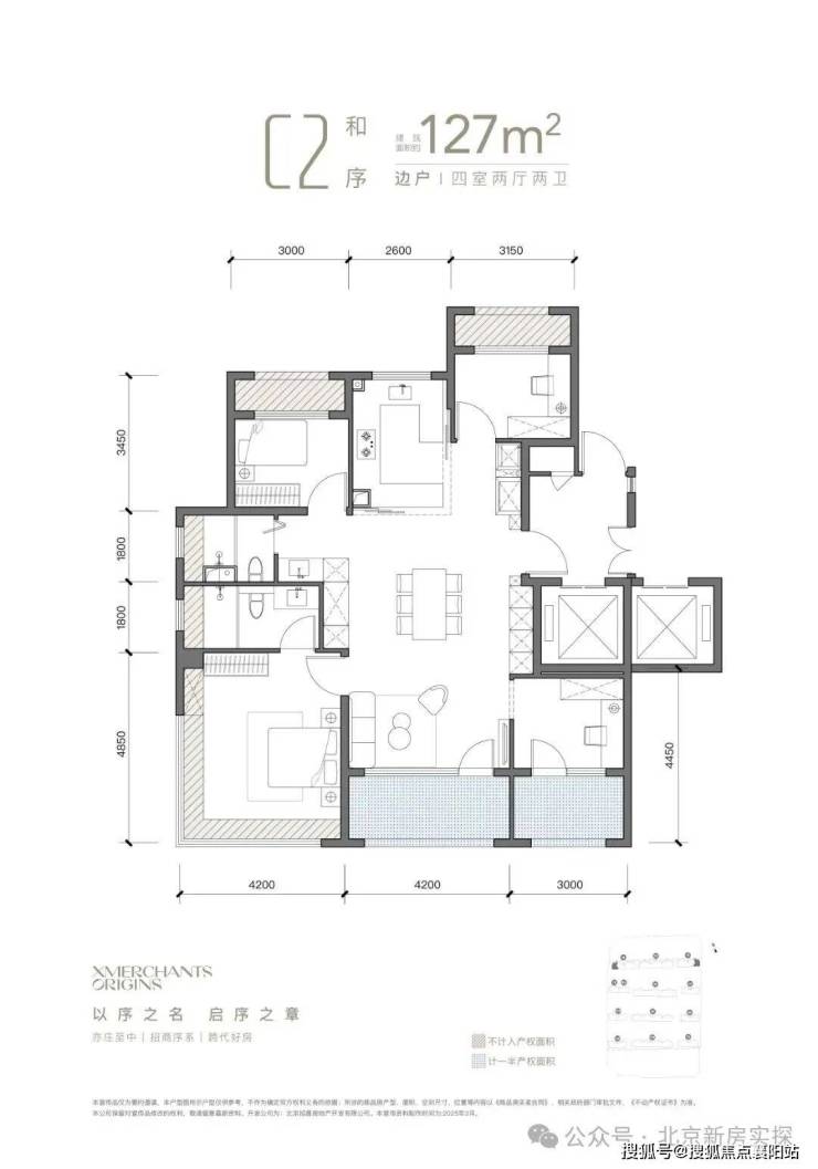 招商序一共4款主力户型,从三口之家到四世同堂全覆盖,全明通透、南向面宽、赠送多,北京少见的高实用率!