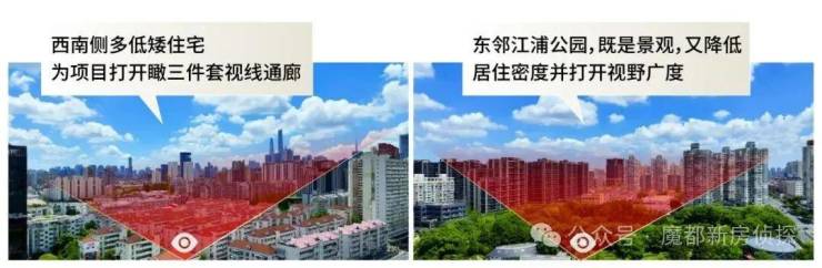 ②、圈内能瞰三件套的3房,往往需要选中高区房源,起步价约1700万,而项目中低区1200-1300万的房源就能实现瞰三件套的需求,进一步放大了价格优势。