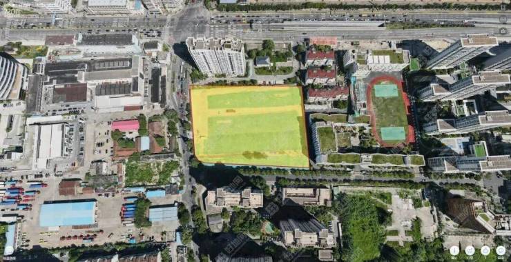 出让的地块距离定海地王北面大概一公里,12号线隆昌路和爱国路中间,地块东面是当年卖9.9万的爱国路三兄弟——龙光、保利置业、融创,现在都已经交房了。