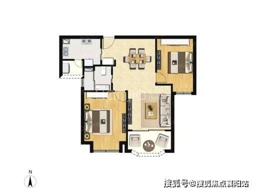 95㎡两房为 全南户型 ,三开间朝南,采光充足、视野开阔,空间布局合理、无浪费面积。