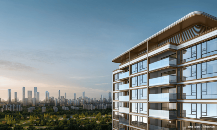 项目摒弃传统塔冠的繁复装饰,采用 天际塔冠造型 , 以 弧美轮廓与金属铝板 , 在光影变幻间展现低调而奢华的质感,赋予金茂府“ 江湾之冠 ” 的迭新与引领。