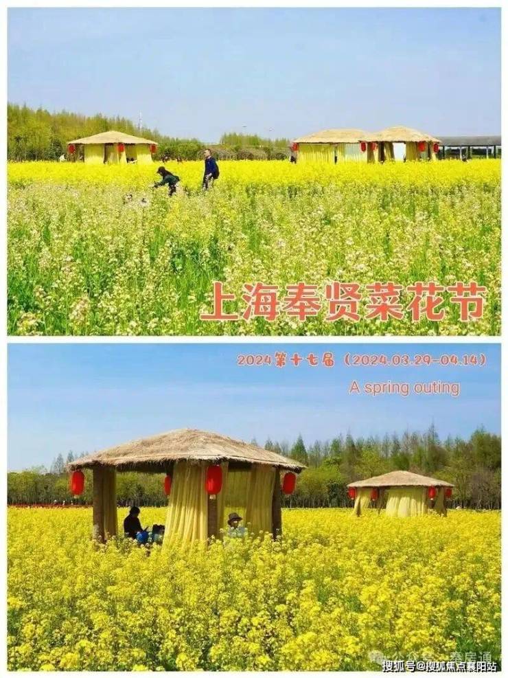 ✦奉贤菜花节已经成功举办了十多届,是上海春季一项备受期待的农业与旅游盛事。位于 “花米庄行”景区 的万亩油菜花田,金色花海与古朴田园交相辉映,场面壮观,近几年推出 “水陆空”立体游赏 模式(如花间直升机、花田小火车、游船)以及花花大马戏等近20项沉浸式活动,远超传统赏花。作为华东地区老牌花节,获评 “华东十大油菜花胜地”,每年的3月中下旬至4月中旬是赏花期,景区门票亲民,常有早鸟优惠。