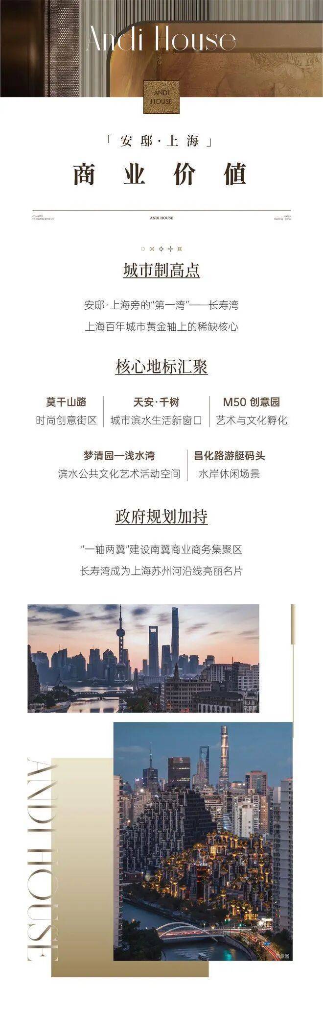 地段决定价值,内环核心不可复制。安邸上海坐落 上海市普陀区安远路 128 号(近江宁路) ,地处普陀、静安两区交界, 内环内苏州河长寿湾 “S” 湾核心地段 ,直线距南京西路商圈约 1.5 公里、静安寺约 2 公里,同时辐射中山公园、不夜城、长寿路四大核心商圈,是城芯稀缺 “闹中取静、近河不临河” 的优质居住板块。