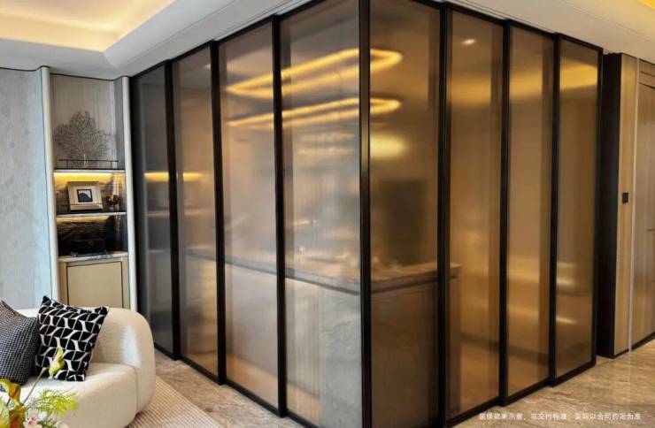 厨房与餐厅打造半开放式格局,隐形推拉门既可以隔绝烟火,平时收入墙内让空间一体、开阔大气!