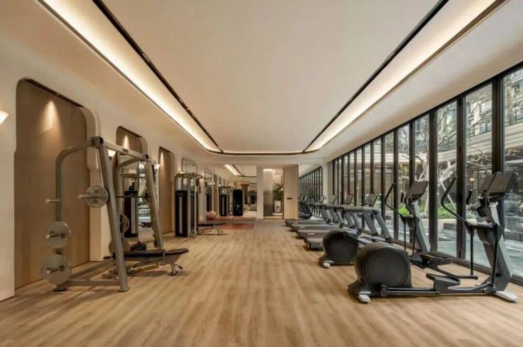 健身房在传统健身区外,专门设有 女性专区,设计风格柔和雅致,更贴合女性审美与健身习惯
