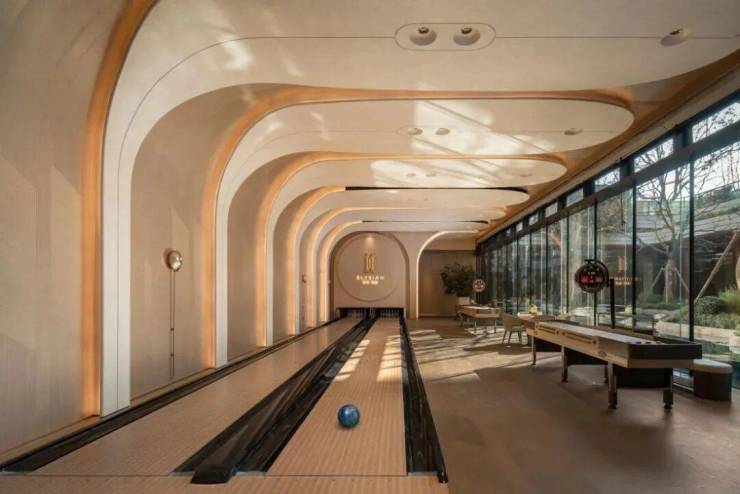保龄球&沙壶馆, 作为市场上罕有的高端配套, 沙壶 起源于 15世纪英国贵族的桌面游戏 ,现已成为高端派对与圈层社交的催化剂; 保龄球 则与网球、高尔夫、斯诺克并称“ 四大贵族运动 ”,深受国际精英喜爱
