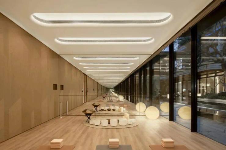 瑜伽室内置 七组定制音钵,呼应国际流行的音疗潮流,以国际化、多元化方式为业主提供舒缓身心的体验