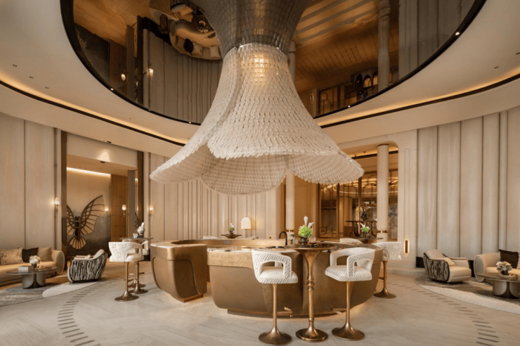 艺术颜值上,从 手工釉彩、 羽化光穹到 孤品奢石等,每个细节皆以匠艺雕琢,成就上海豪宅会所的美学典范