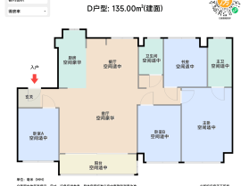 建面约 135㎡四房两厅两卫(终极改善) :总价 580 万起,四开间朝南,南向面宽约 13.6 米,短进深大面宽设计,采光与视野极佳;LDK 一体化横厅连接观景阳台,主卧套房带独立卫浴、衣帽间 + 270° 全景飘窗,全屋品牌精装,空间开阔不拥挤,一步到位不用换房,适配三代同堂终极改善。
