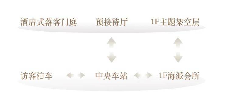 地上空间的美学感受随着车行归家动线也延伸到了地下,海上清和玺的地下车库,不仅精装交付,还首次提出 “中央车站” 概念。