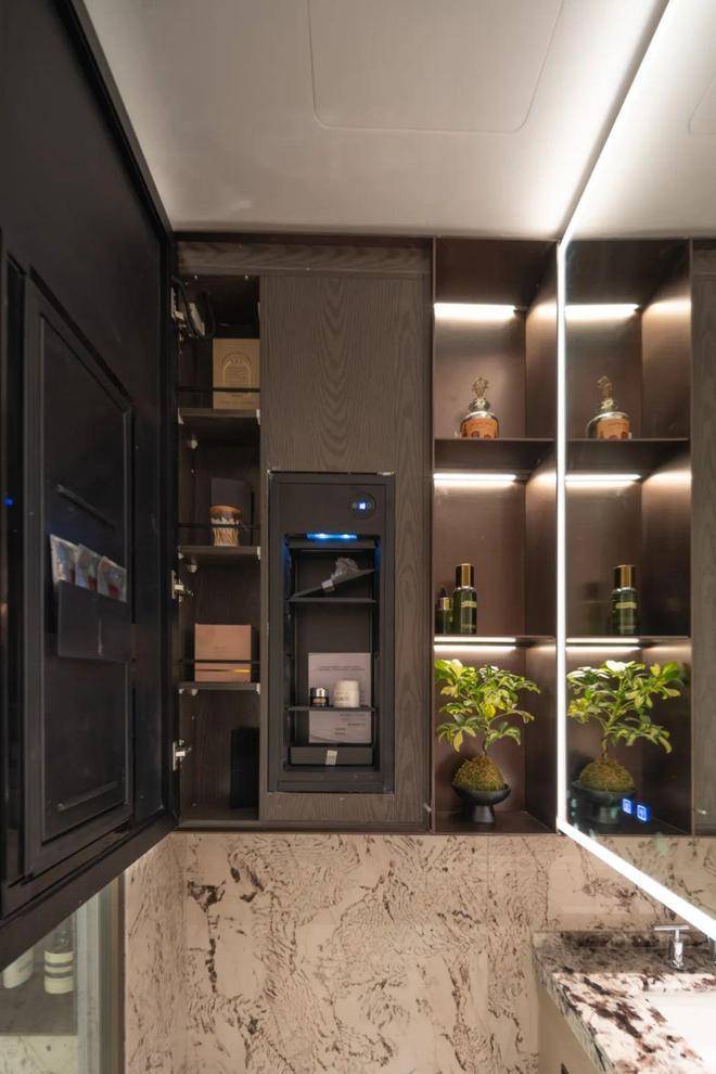 小户型最让人担心的小户型的收纳问题招商序给出了自己的解题思路,让我们看看它的收纳空间,首先是一整排的玄关收纳,玄关柜据说可以放下28双高筒靴,而且是大理石的台面石,另一侧的储物柜是一个容量较大的落地柜,足够收纳一个大行李箱,背面还贴心设置了洞洞板,可以悬挂雨伞、包包等物品,整个玄关柜是天然木皮鸡翅木包裹,非常高级,预留S墙的设计轻松收置双开门冰箱、厨房与卫生间采用了模块化的收纳系统,通过碗碟拉篮、谷物抽、不锈钢开架,贯穿式镜柜与美妆冰箱等收纳道具,将日常用品归置的仅仅有条,114主卧更是预留了超大的衣柜空间。✅招商序售楼处电话:400-833-6309(官方售楼处电话)