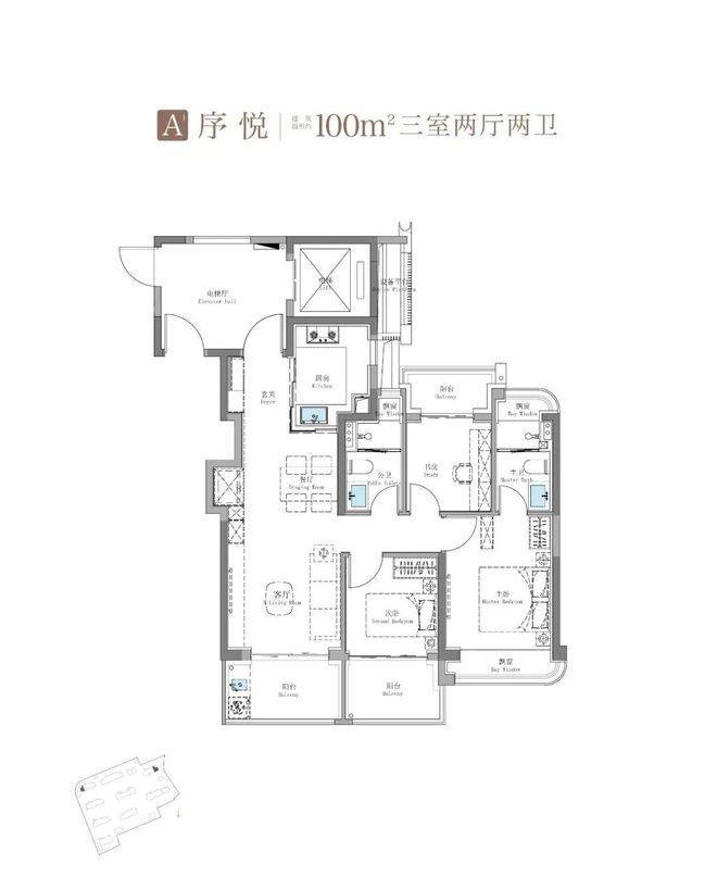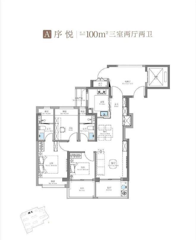 建面约115㎡3房2卫只有二期才会有