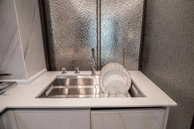 除了户型尺度,招商序的展示空间用料也是在700万这个量级难逢敌手,整个展示空间,除了卧室的拼花地板,其他区域的地面与墙面几乎全是岩板与奢石。连卫生间墙面都做到了岩板通铺....这种用料一般只有千万级的豪宅才能看到,114的客厅背景墙也采用了天然大理石搭配岩板交付,岩板因工艺复杂、性能优异,多用于高端场景,招商序厨房、 卫生间墙面地面,客餐厅地面连通阳台,全部通铺岩板,可见硬装投入度之高。✅招商序售楼处电话:400-833-6309(官方售楼处电话)