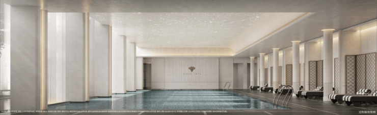 无边泳池,海派法式设计定制,璀璨星空顶搭配通透全景视野,宛如一件熠熠生辉的艺术藏品。