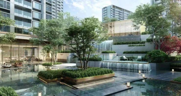 社区内部:35% 高绿化率,新中式五重园林,四季有景,推窗见绿,打造天然氧吧;