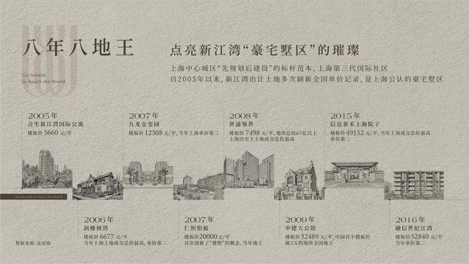 自2005年以来,新江湾城出让的土地多次刷新全国单价纪录,像项目旁边的中建大公馆的2009年的拿地价为32,484元/平方米,作为首个地价突破3万的项目,创下当时全国土地单价纪录。