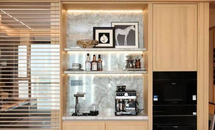 户型还标配了实用餐边柜(120户型采用与ALILA酒店同款的设计),内嵌博世嵌入式直饮机、蒸烤箱及保温抽。无论是清晨的一杯咖啡,还是深夜的一碗热汤,都能随时为您备好。