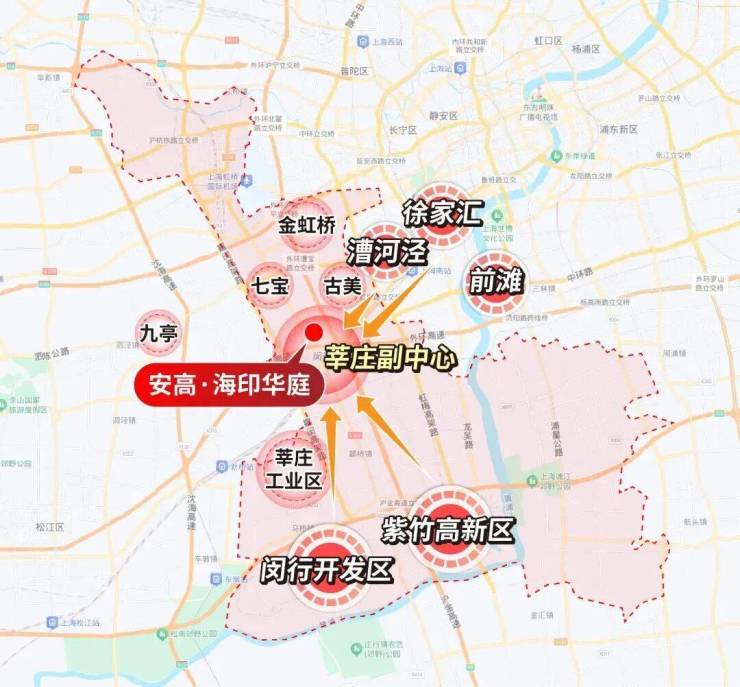 #莘庄 产业集群同时,整个闵行的优质产业其实遍地开花但若你从地图上看,莘庄恰好就处在“心脏”地带,漕河泾、七宝、莘庄工业区、航天城、闵开发、紫竹就像众星拱月般将莘庄环绕在中间那莘庄自然是承接这些产业区高薪人才再好不过的居住地