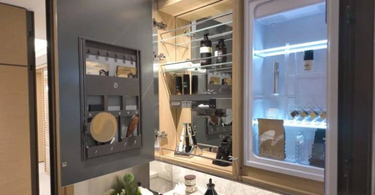 主卫空间更是升级为私人美学沙龙,配备科勒维C美研龙头,具备过滤余氯与微气泡洁面功能;奥普光子嫩肤浴霸让沐浴同时兼具护肤效果。再结合美妆冰箱与镜箱,共同构成独特的“美颜四件套”,悉心呵护日常仪容。