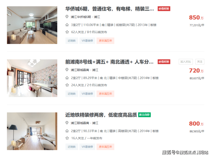 特别是浦江华侨城、浦江颐城晶寓、浦江颐城尚院这一批房龄较新的,挂牌价格大多稳定在8万/㎡左右。