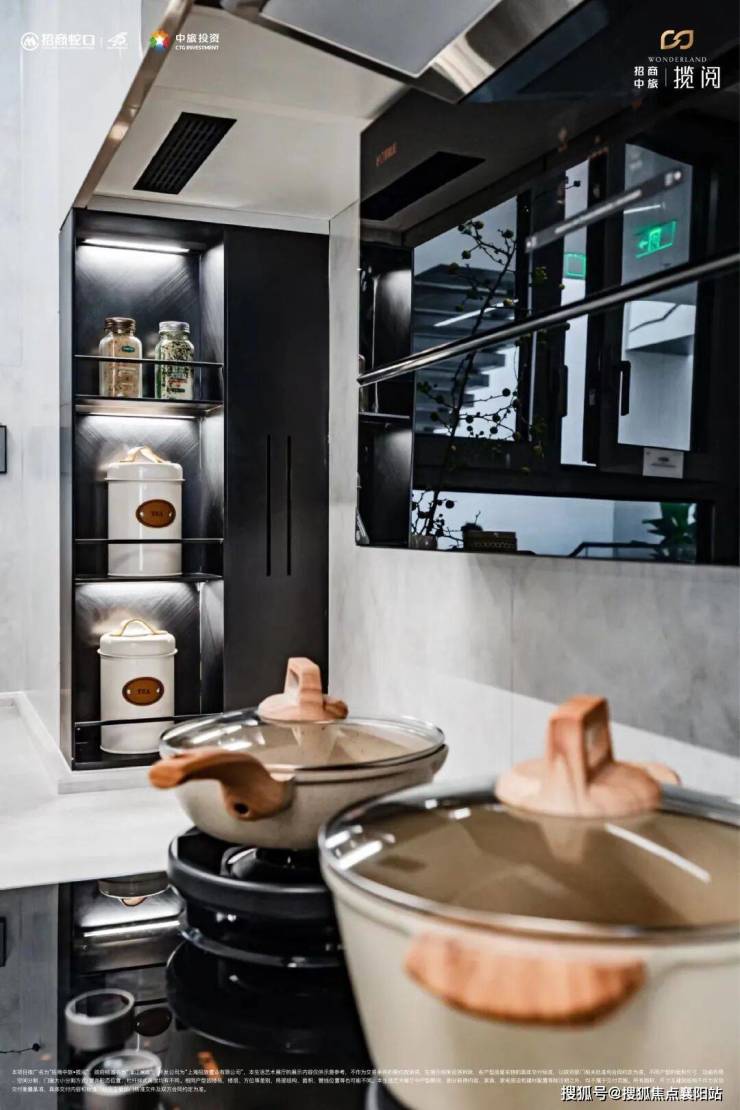 与此同时,项目在智能化方面下足了功夫,油烟机感应触控、燃气灶具有防干烧功能,60秒干烧会自动熄火关气,智能化的同时更注重居家的安全。