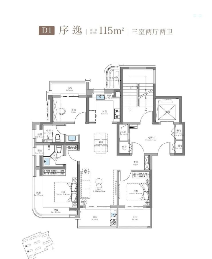 建面约115㎡3房2卫只有二期才会有